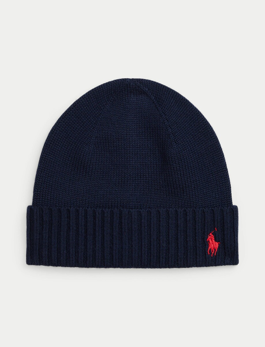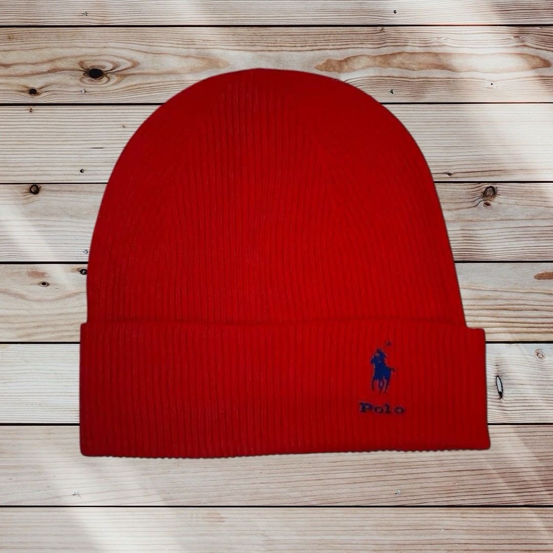 Polo Ralph Lauren Red Logo Pony Merino Wool Beanie Hat Turn Up RRP £75 Logo