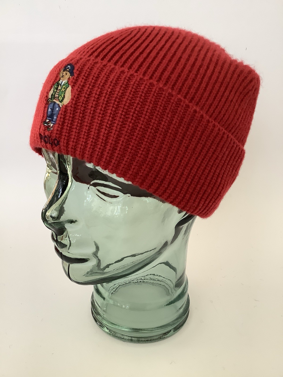 Polo Ralph Lauren Mens Bear Cotton Beanie Hat | Red | Turn Up | One Size