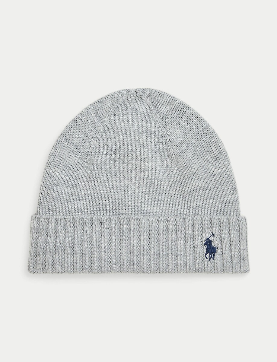 New Men’s Polo Ralph Lauren Grey Extra-fine Merino Wool Classic Cuffed Beanie