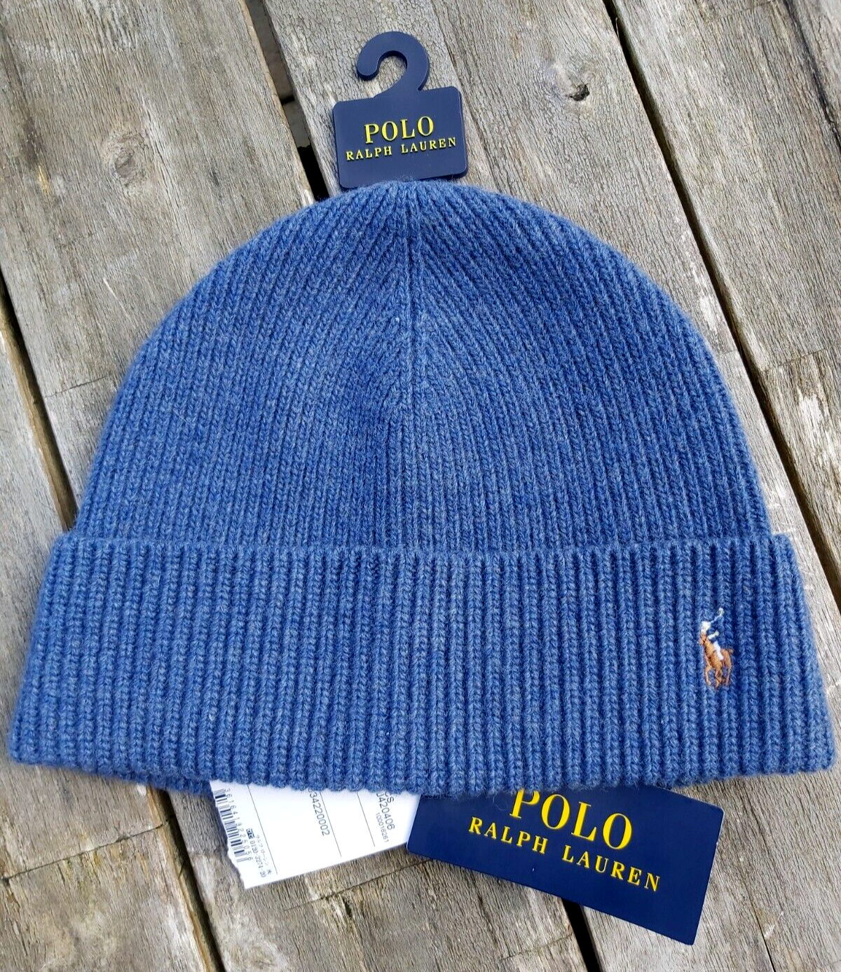 Genuine POLO RALPH LAUREN Blue Heather 80% Wool BEANIE Hat Tag 44983422002 Ralp2