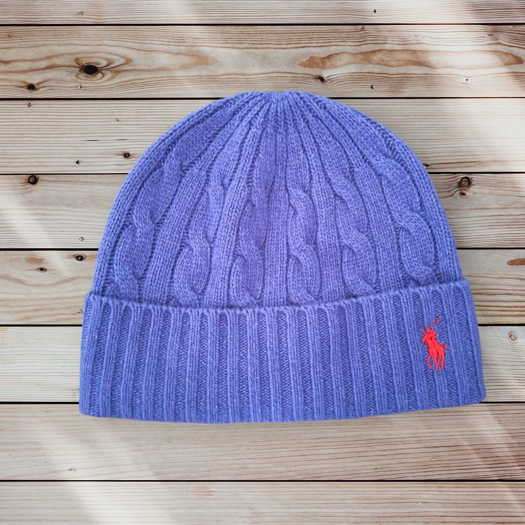 Polo Ralph Lauren Classic Cable knit Beanie Wool One Size Blue Logo RRP £79