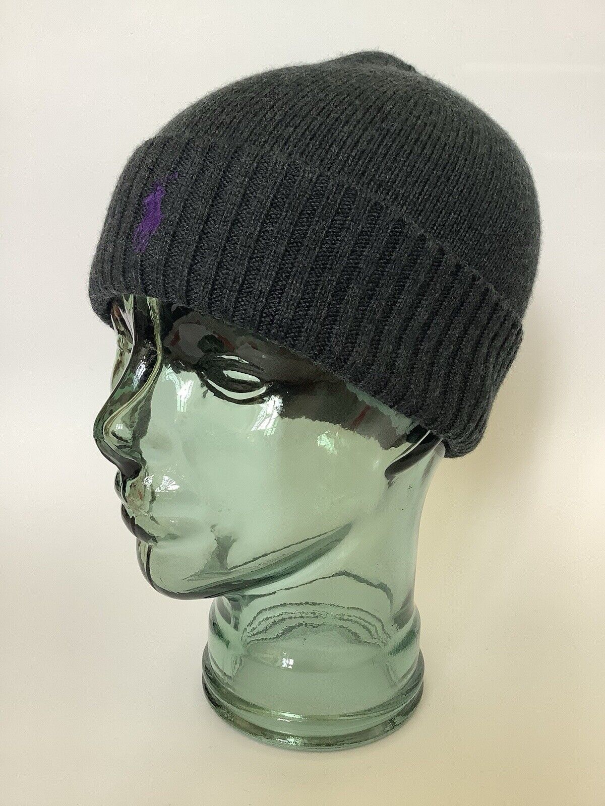 Genuine POLO RALPH LAUREN Dark Grey MERINO WOOL BEANIE Hat Tag 44983422002 Ralp1