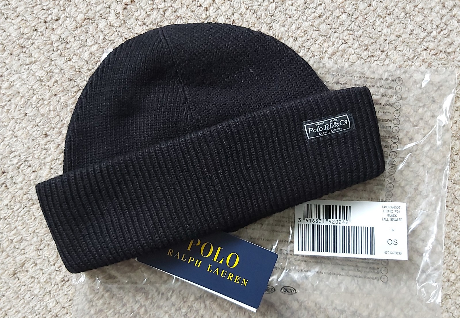 Genuine POLO RALPH LAUREN Black TRAWLER 50% Wool BEANIE Hat 449853965001 Ralp1