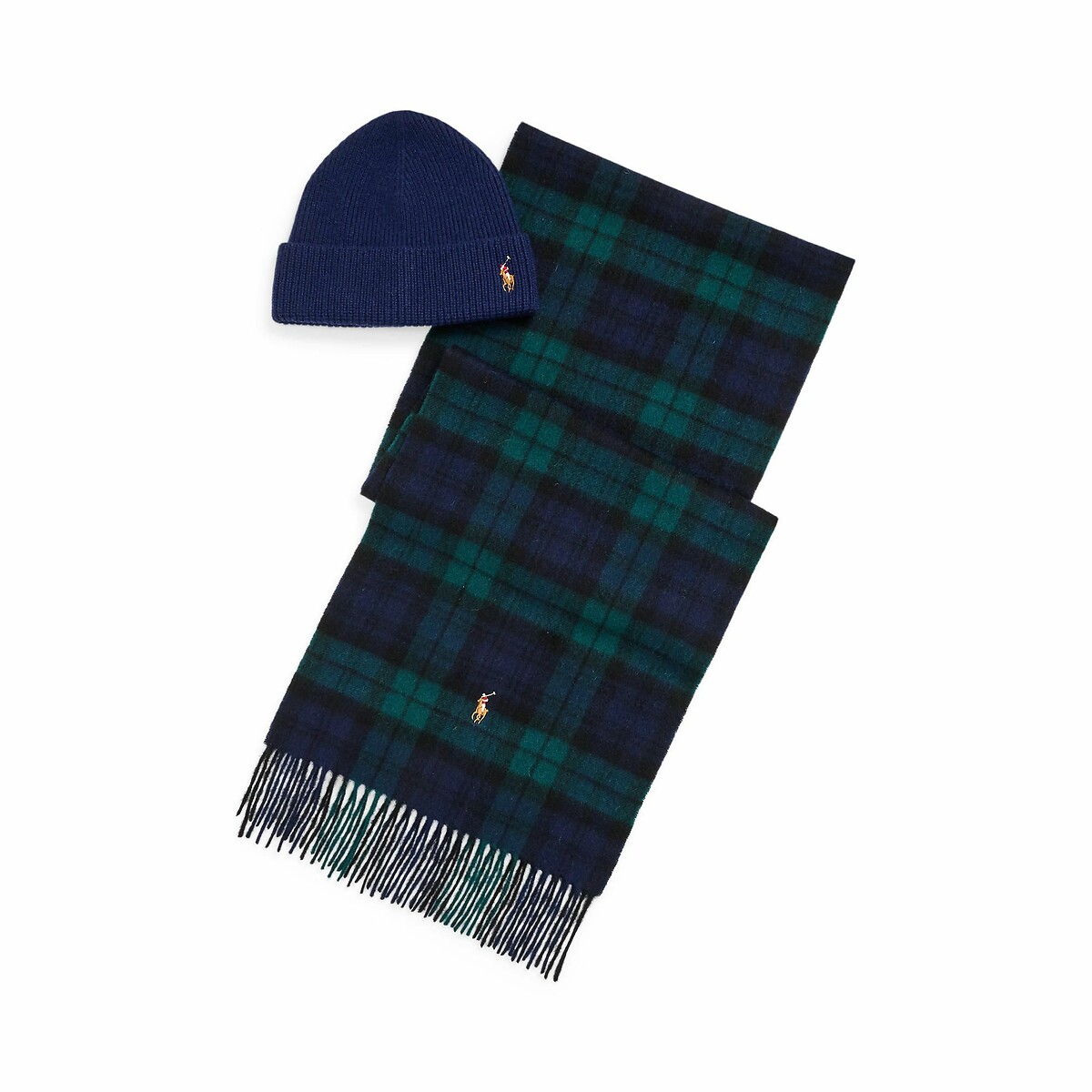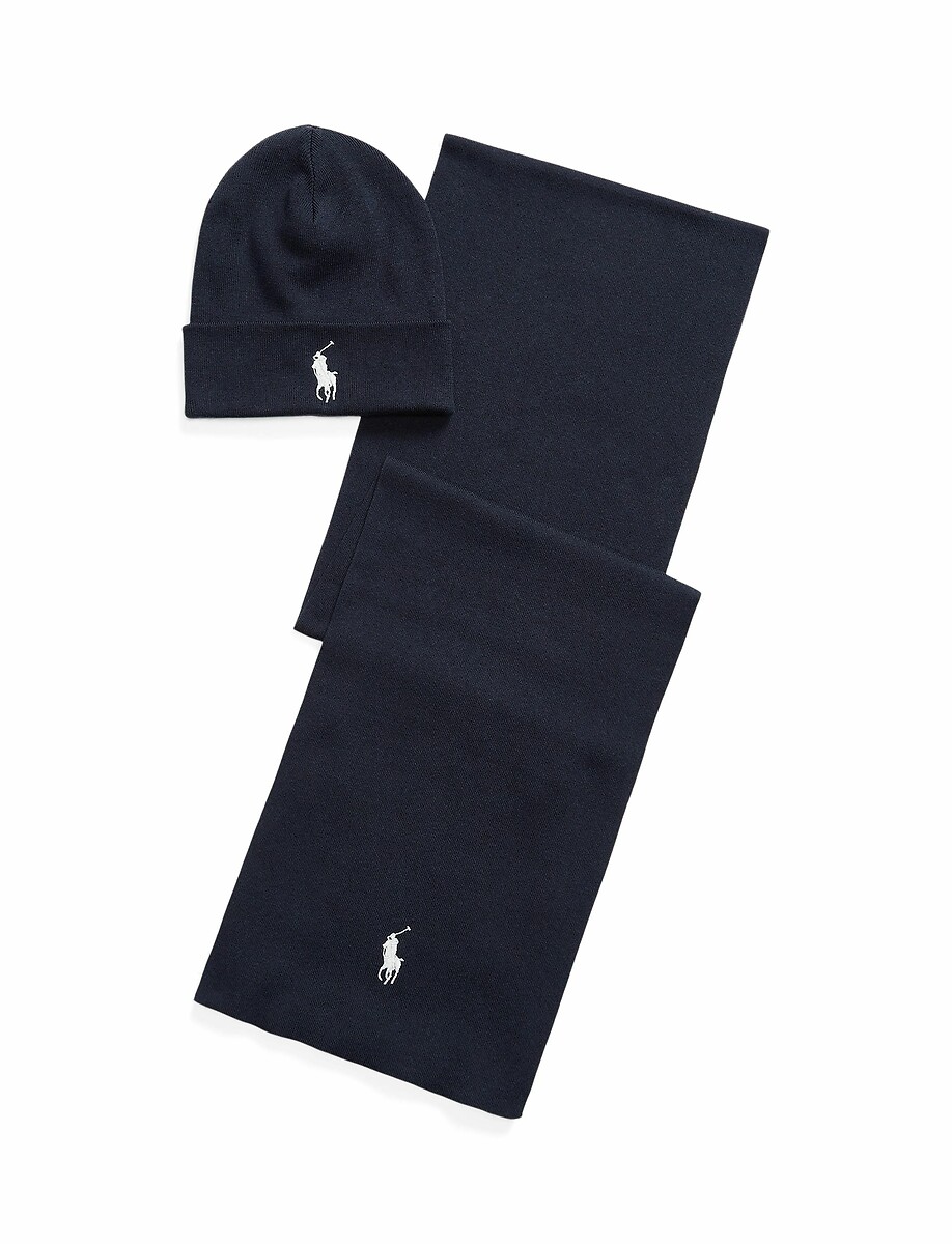 Polo Ralph Lauren Wool Blend Navy Grey Scarf Beanie Hat Gift Set AUTHENTIC BNWT