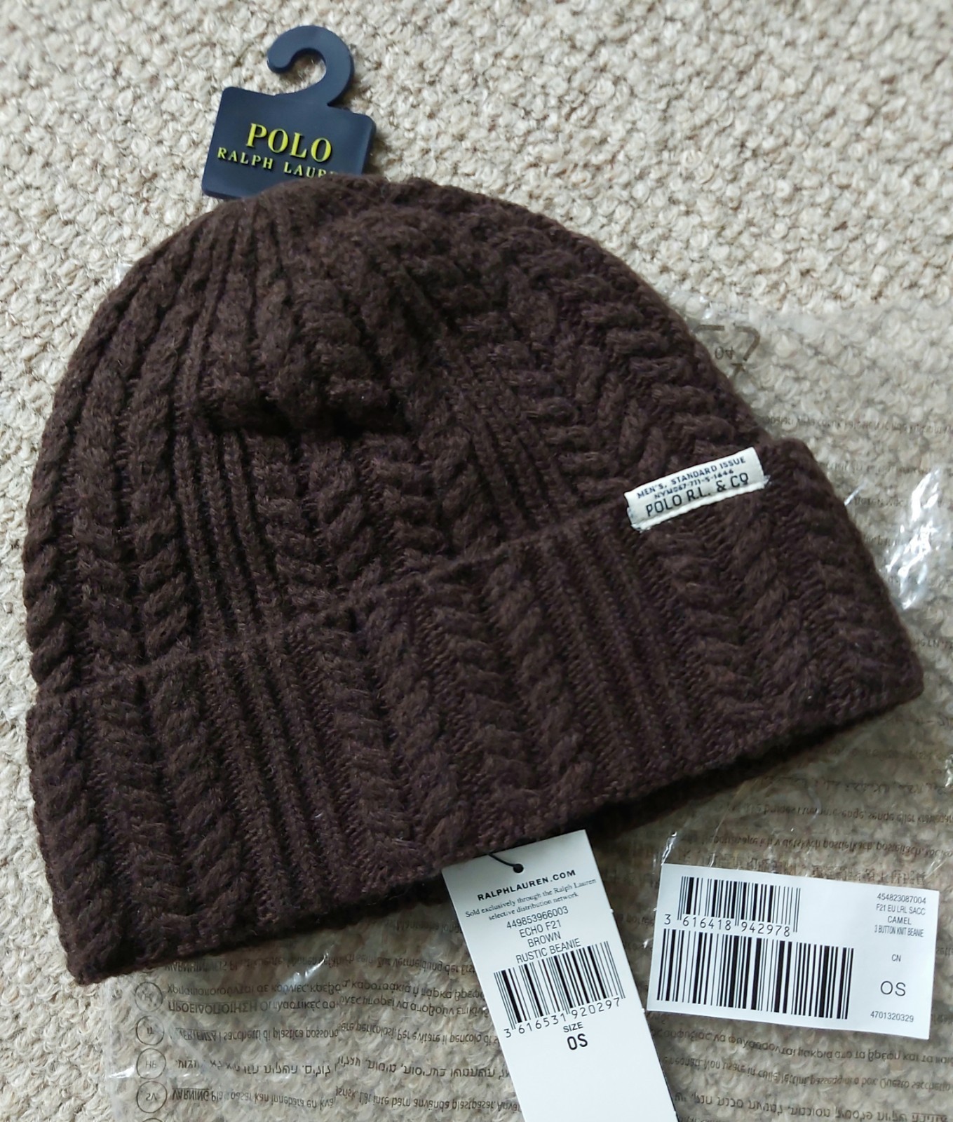 Genuine POLO RALPH LAUREN Brown 30% Wool Rustic BEANIE Hat 449853966003 Ralp1