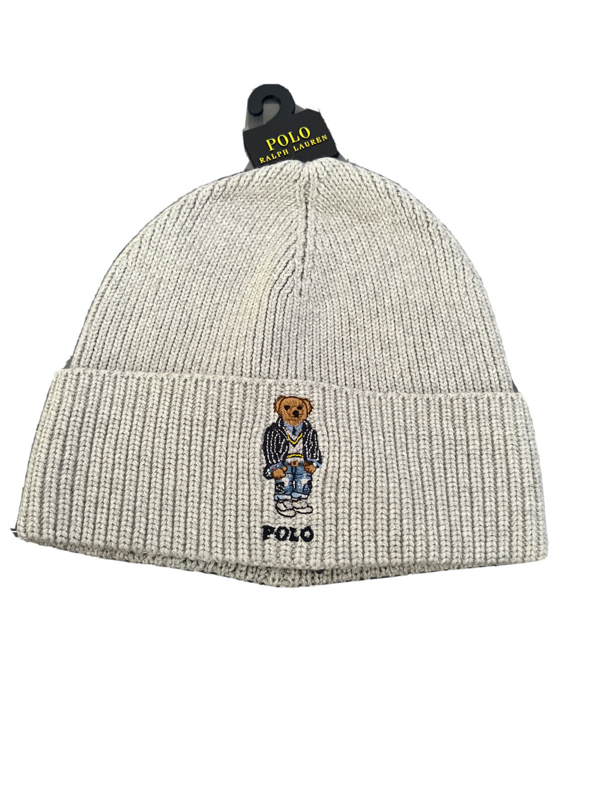 Polo Ralph Lauren Mens Bear Cotton Beanie Hat | Light Grey | Winter | One Size
