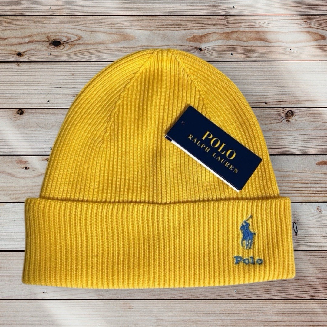 Polo Ralph Lauren Yellow Heather Pony Merino Wool Beanie Hat Turn Up £75 Logo