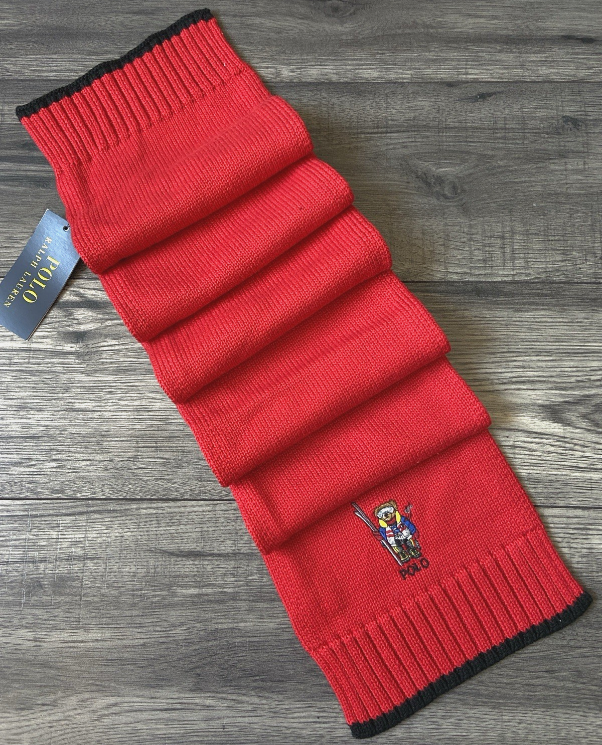 POLO RALPH LAUREN POLO BEAR RED RIB KNIT SCARF CHILDRENS 6-16 YEARS BNWT
