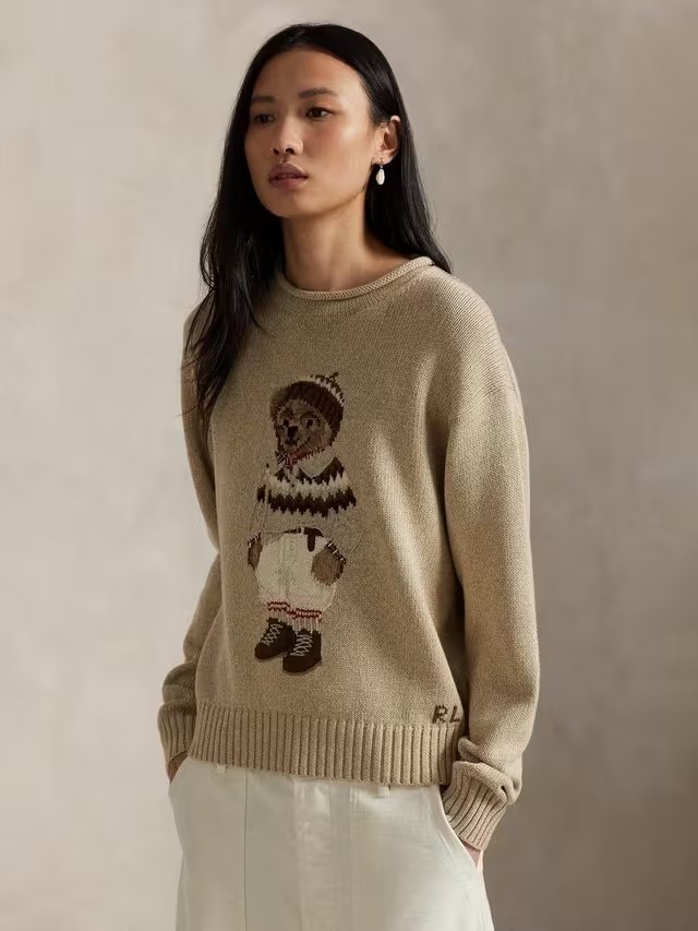 NEW Ralph Lauren Polo Women's Bear Loose Fit Crew Neck Jumper - Taupe - Large