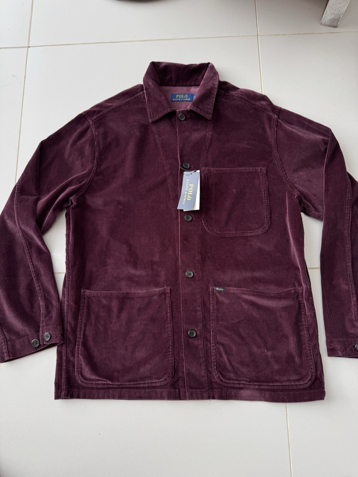 New Polo Ralph Lauren Mens Corduroy Burgundy Red Utility Over shirt Jacket. S