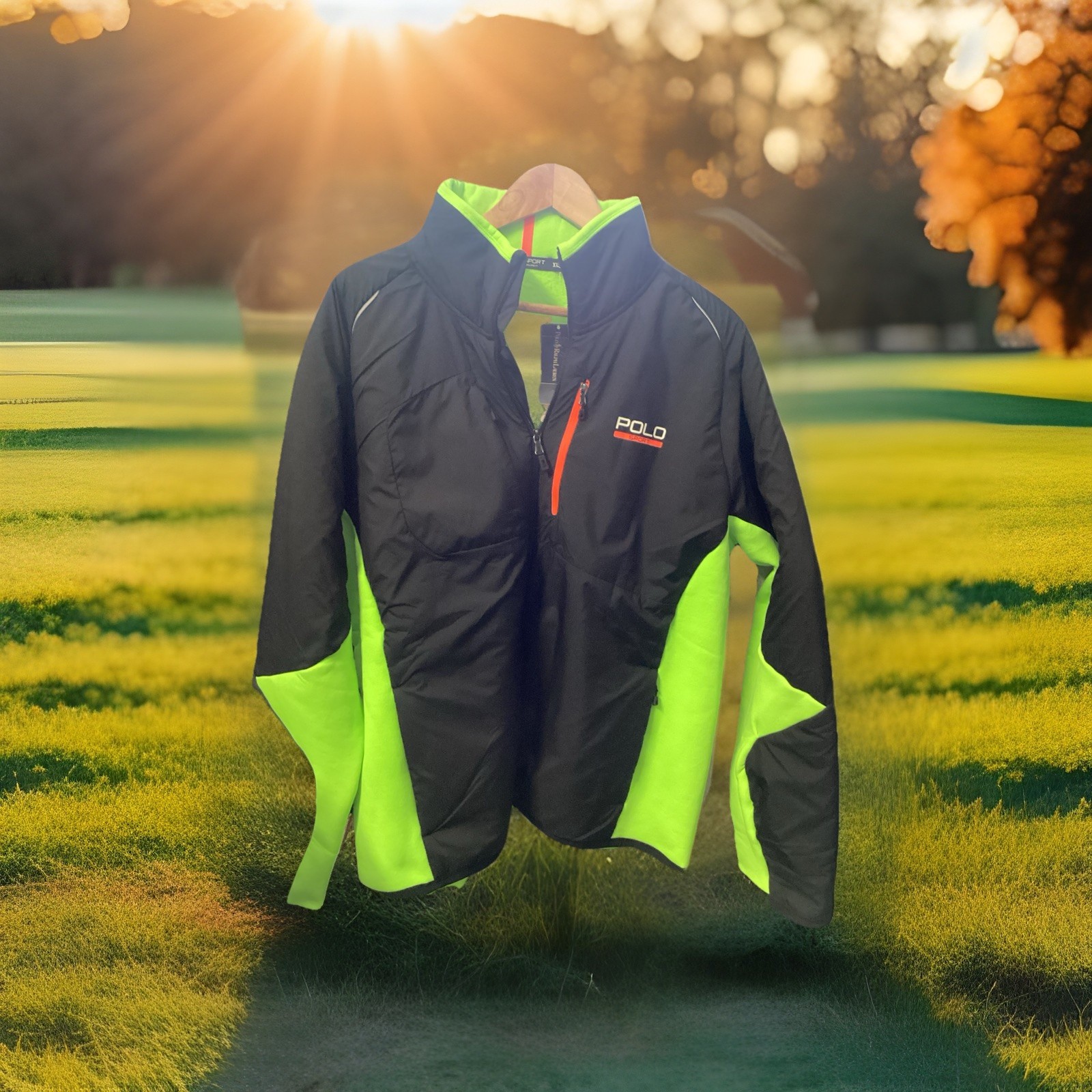 Mens Polo Sport Ralph Lauren Black & Green Hybrid Power Stretch Jacket Sz XXL