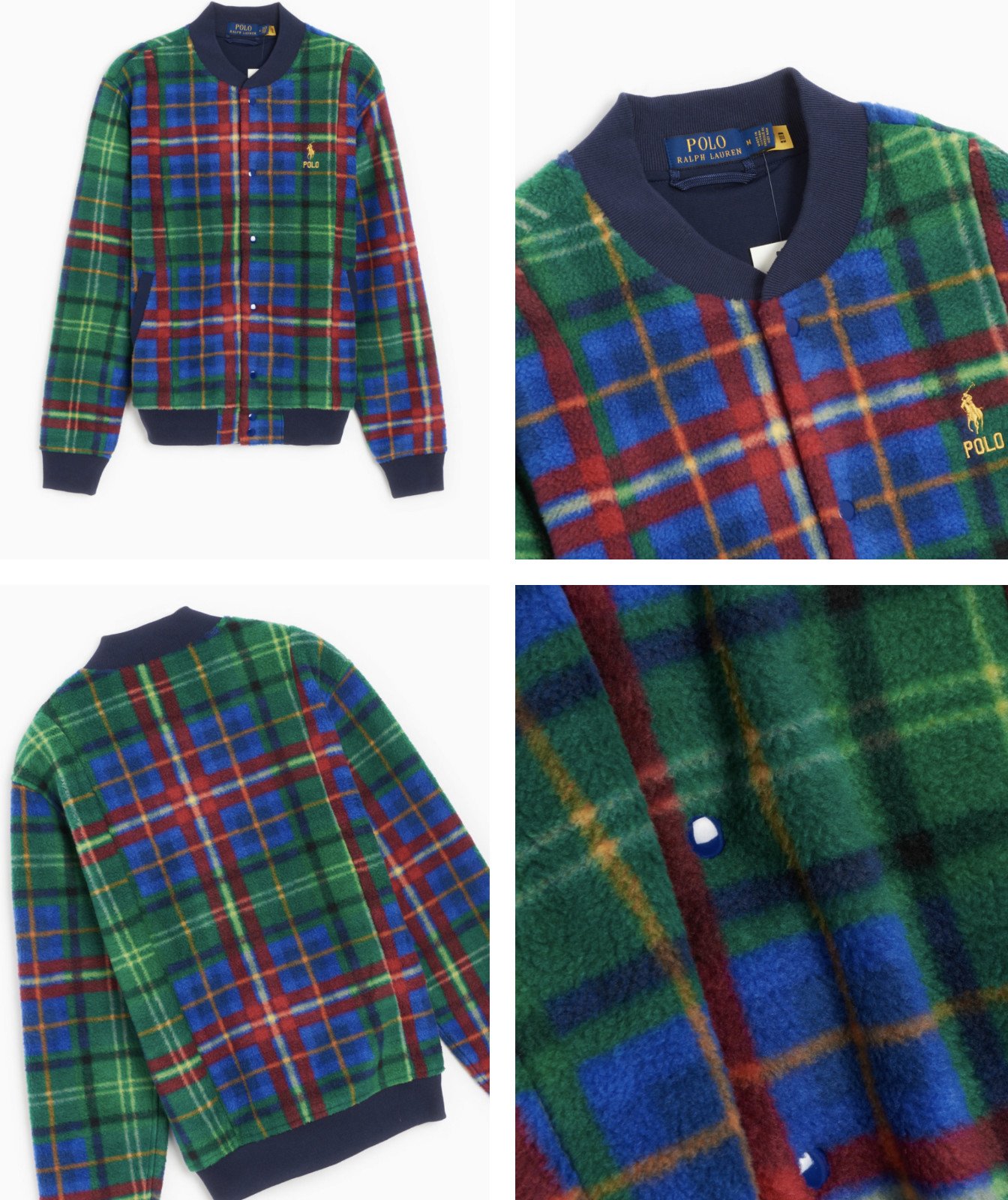 Polo Ralph Lauren Plaid Fleece Baseball Jacket Blouson Bomber XL