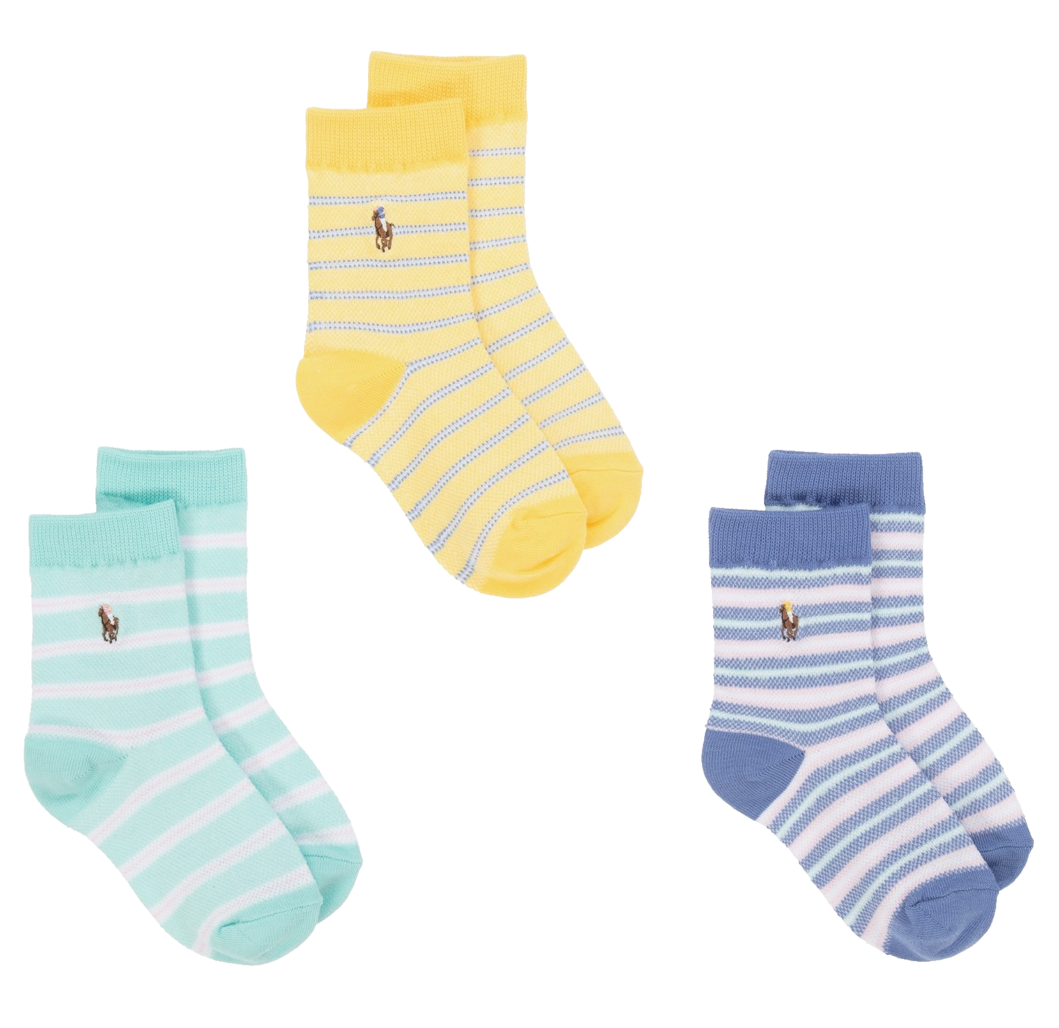 POLO RALPH LAUREN RL | Kids Youth Boys 3 PACK Multi Striped Socks | 6-8 Yrs