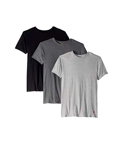 POLO Ralph Lauren Slim Fit w/Wicking 3-Pack Crew Undershirts, Andover Heather Black, Madison Heather Black, Black/Red, S
