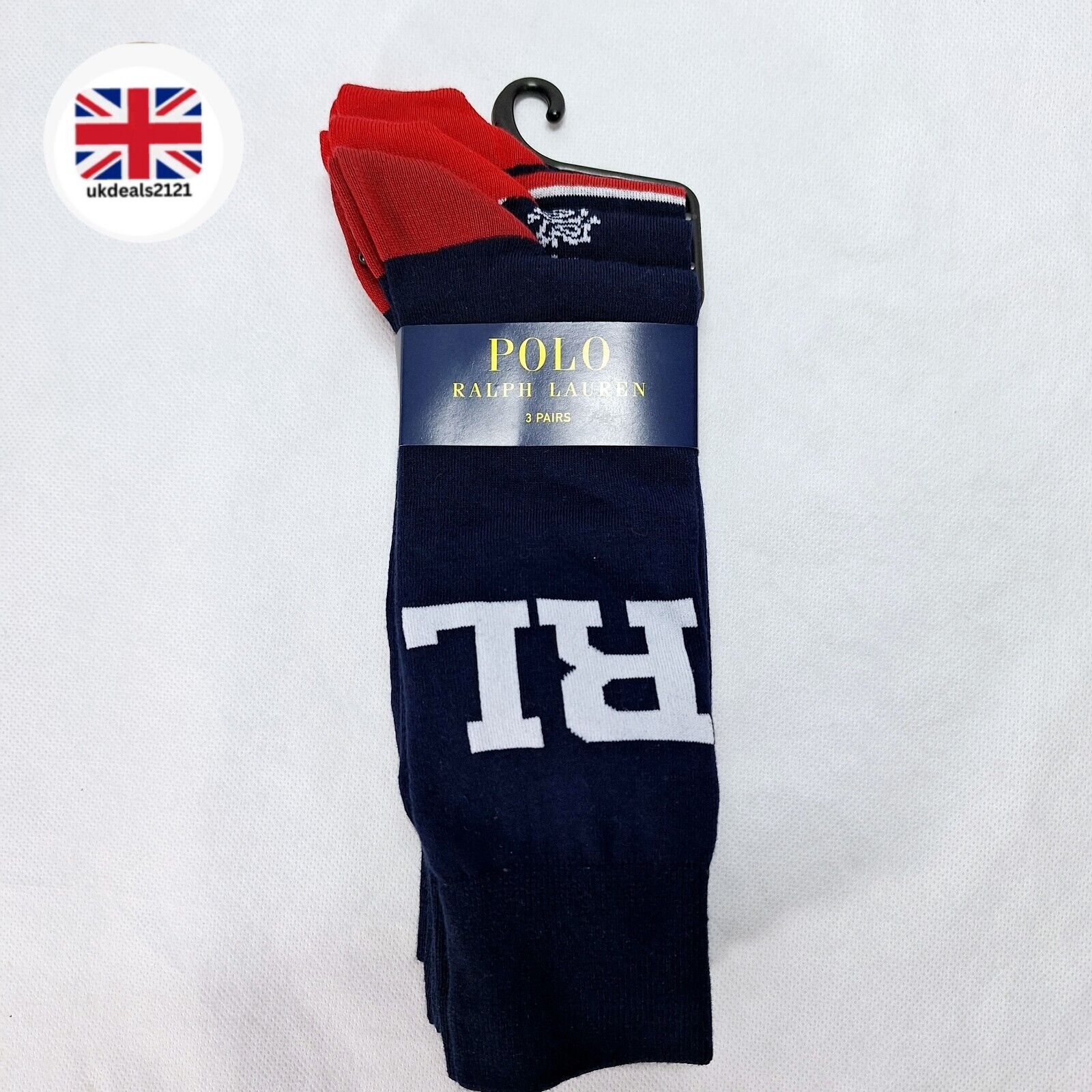 Polo Ralph Lauren Men's 3 Pack Rugby Socks In Gift Box Size UK 9 - 13 8929BX