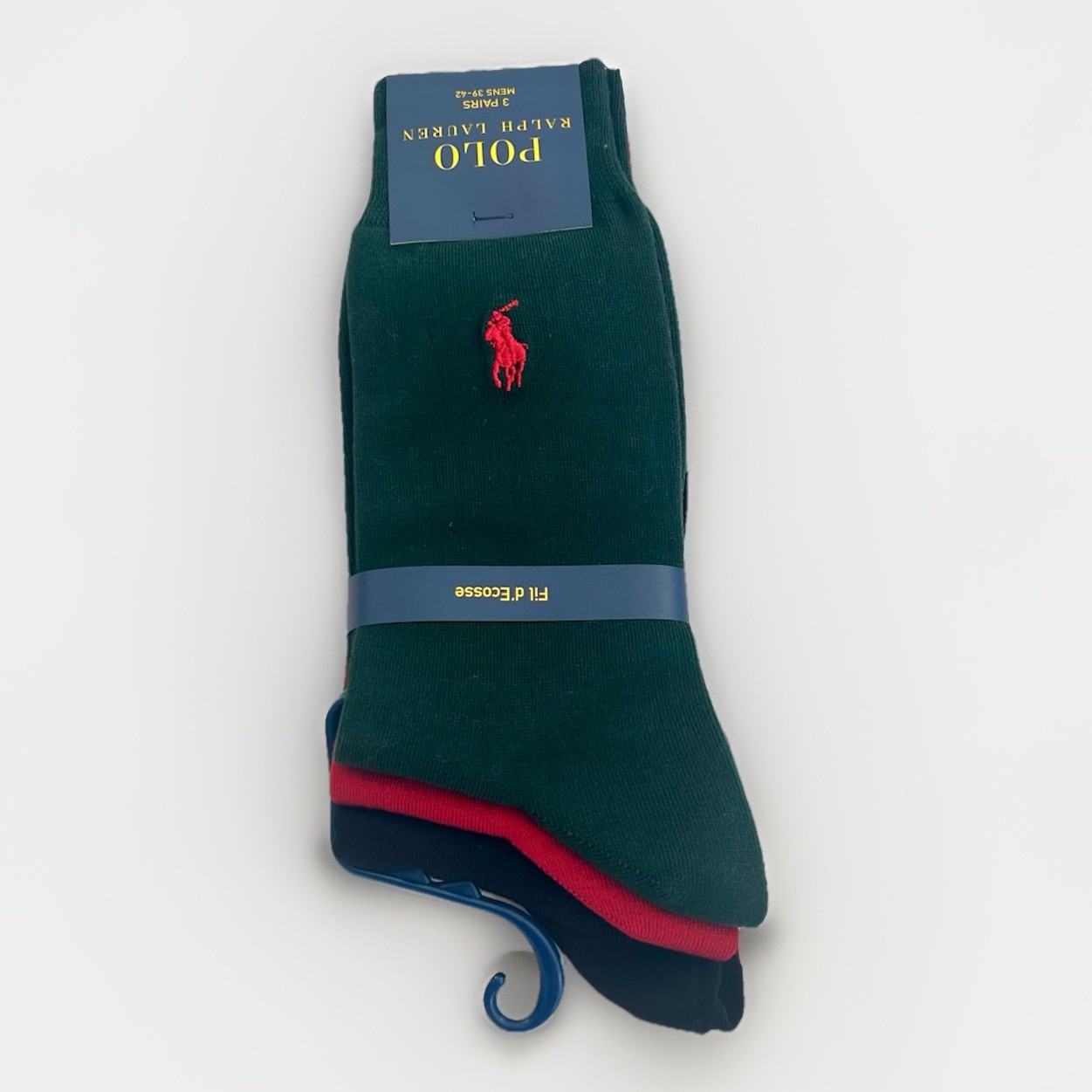 Socks Men’s POLO RALPH LAUREN 3 Pack Mid-Calf Checked Casual Business BRAND NEW