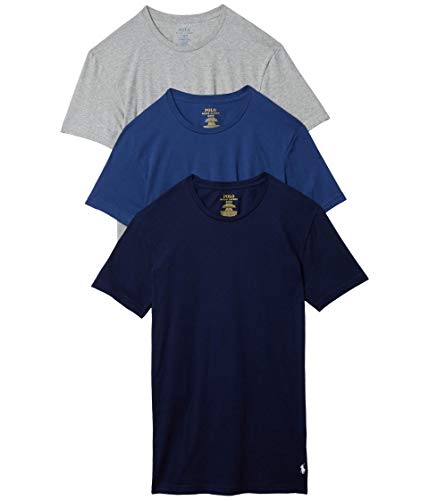 POLO RALPH LAUREN Men's Classic Fit Crewneck Shirt (3 Pack), Andover Heather/Bali Blue/Cruise Navy, XL