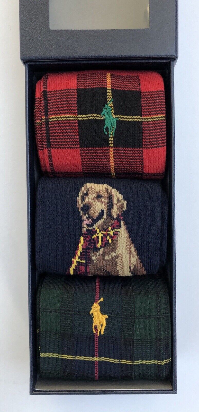 Polo Ralph Lauren Mens 3 Pack Dog & Tartan Socks in Gift Box BNWT