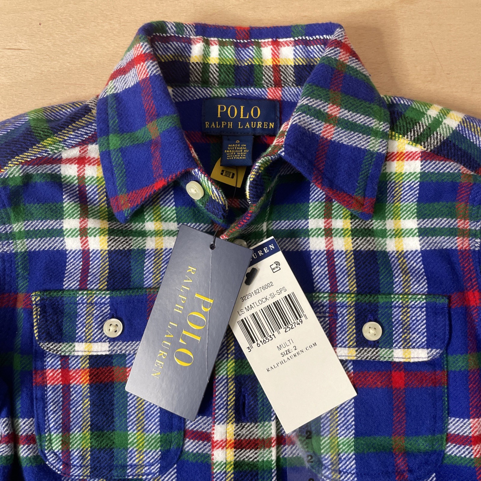 POLO RALPH LAUREN Boys Flannel Shirt 2 Years NEW Blue Mix Check Cotton "Matlock"