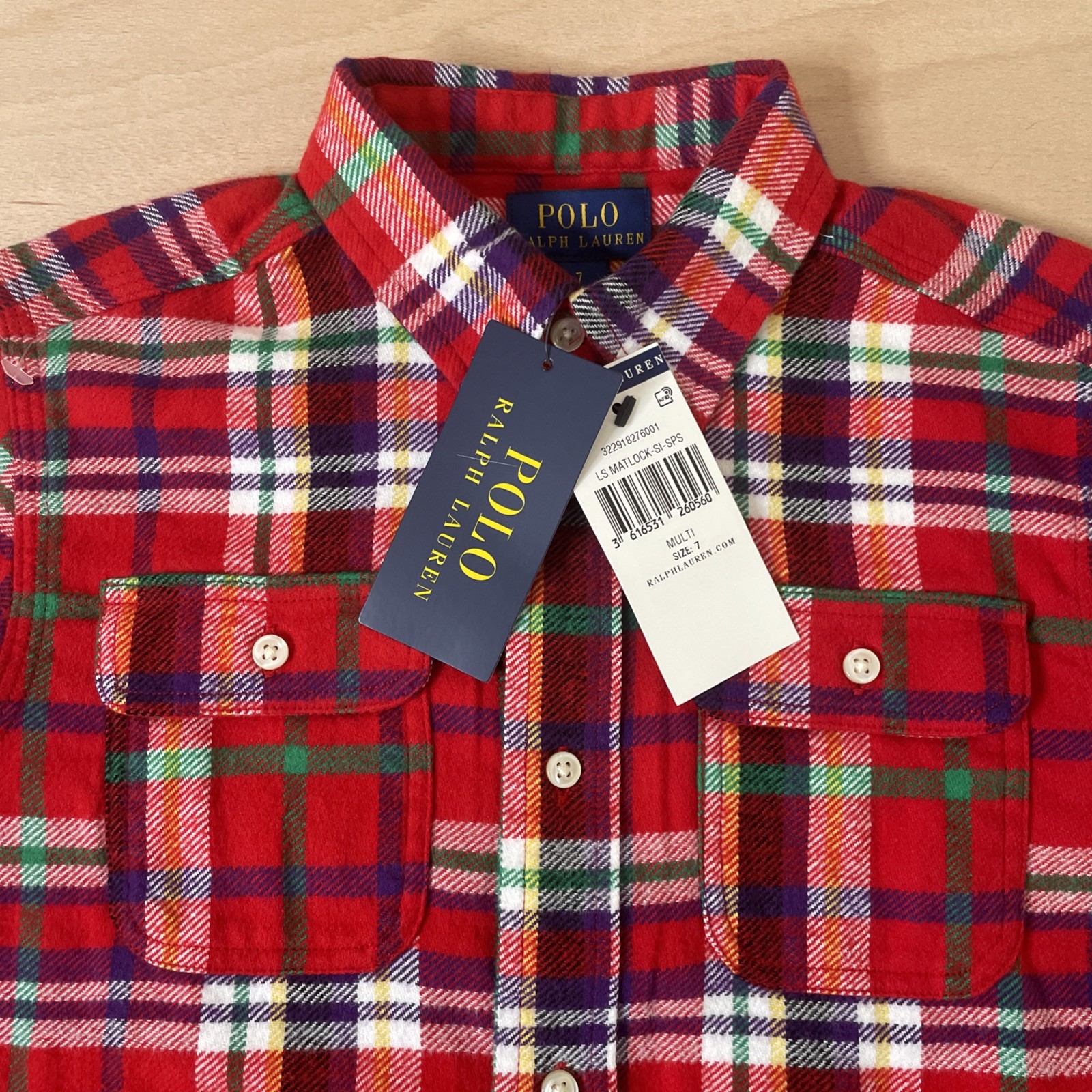 POLO RALPH LAUREN Boys Flannel Shirt 7 Years NEW Red Mix Check Cotton "Matlock"