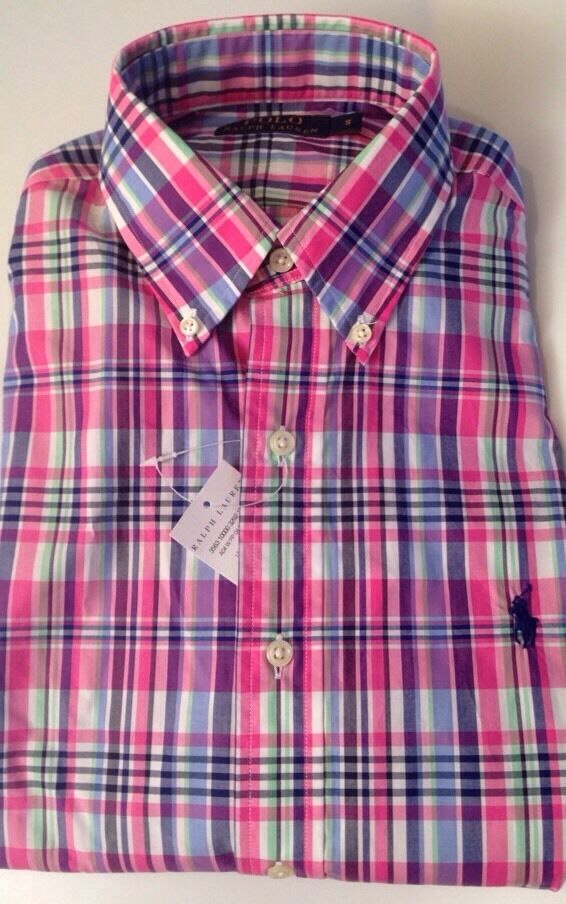 Ralph Lauren Shirt Pink Check Mens Small Custom Fit Plaid Long Sleeve RRP £85