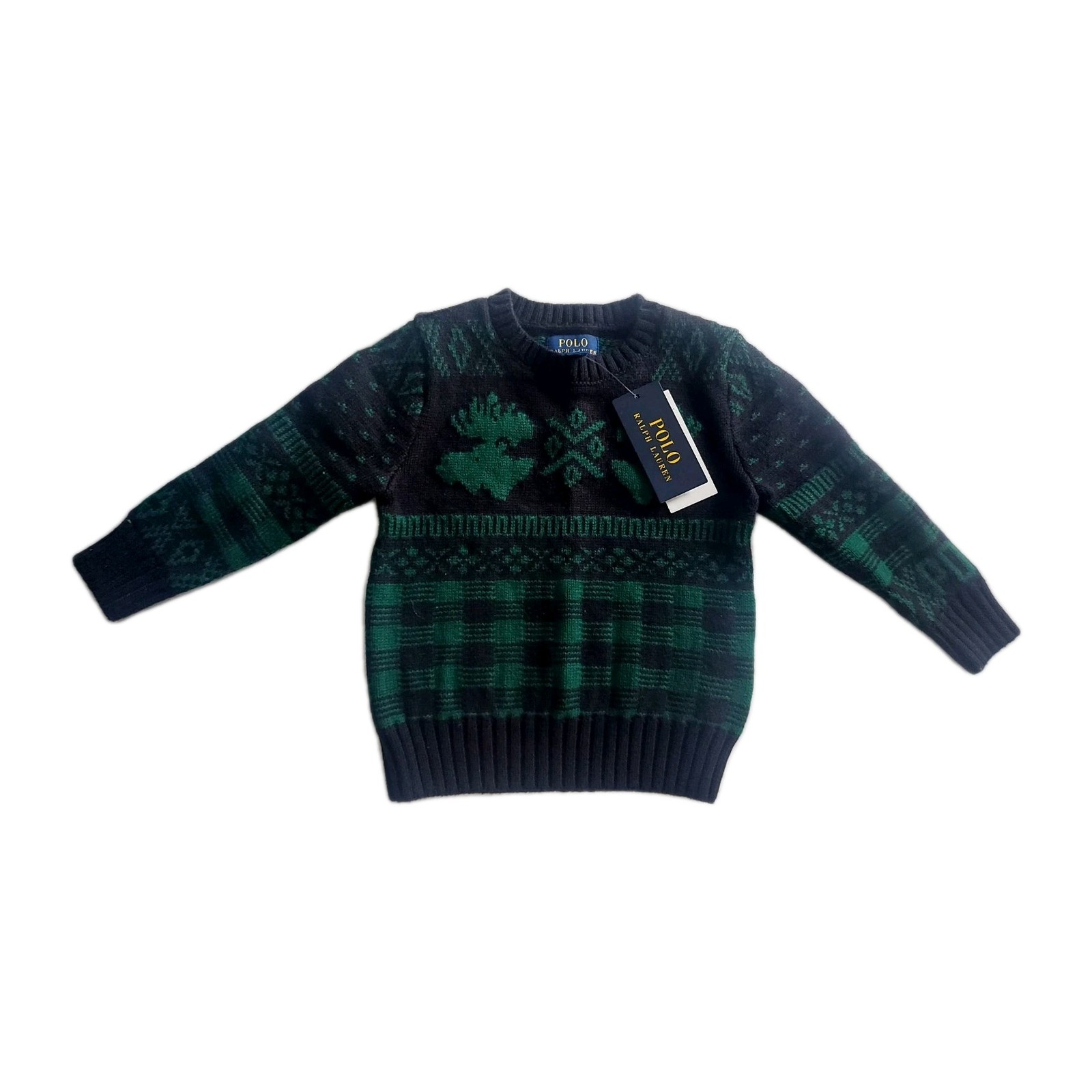 Ralph Lauren NWT Black Green Moose long sleeve jumper Size 2 years Christmas