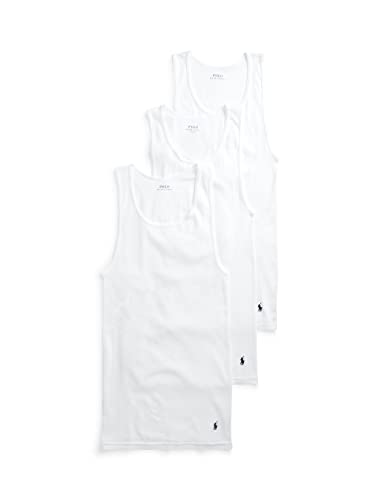 POLO RALPH LAUREN Men's Classic Fit Cotton Tanks 3-Pack, White/Cruise Navy, S