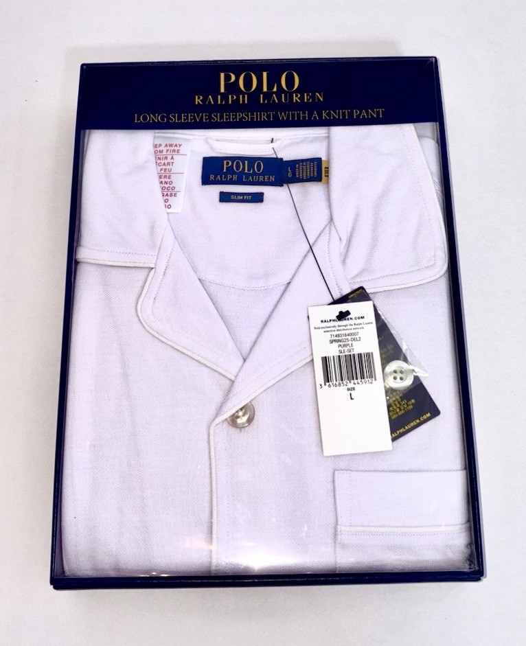 Polo Ralph Lauren Men’s Pyjama Set 2pc Size Large Lilac Knit Mesh LS Shirt BNWT
