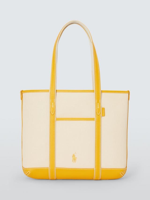 NEW Polo Ralph Lauren Small Cotton Canvas Shopper Tote Bag - Ecru Racing/Yellow