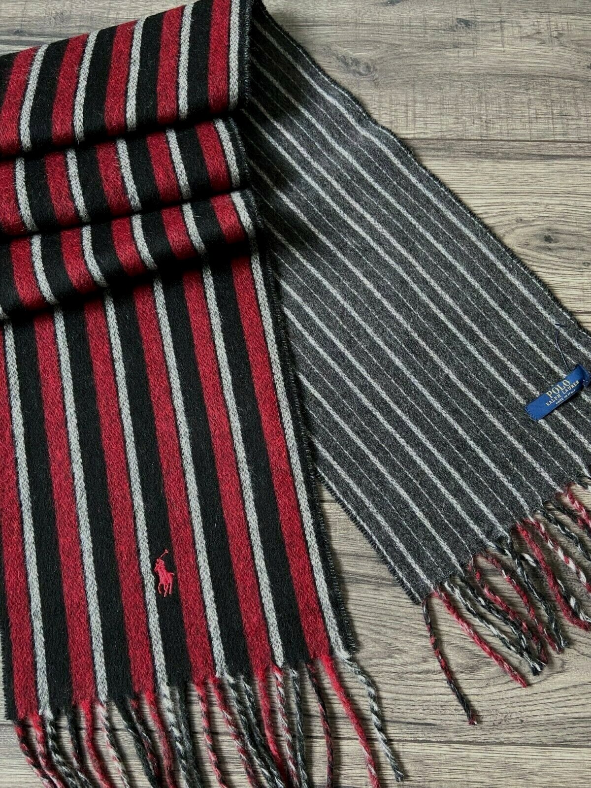 POLO RALPH LAUREN REVERSIBLE WOOL BLEND SCARF MADE IN ITALY BNWT