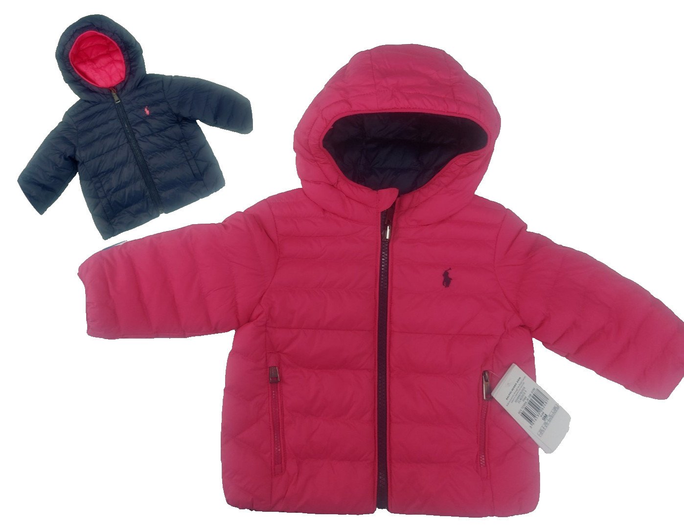 Ralph Lauren Baby Girl Pink Blue reversible Puffer Coat Jacket Size 9 month NWT