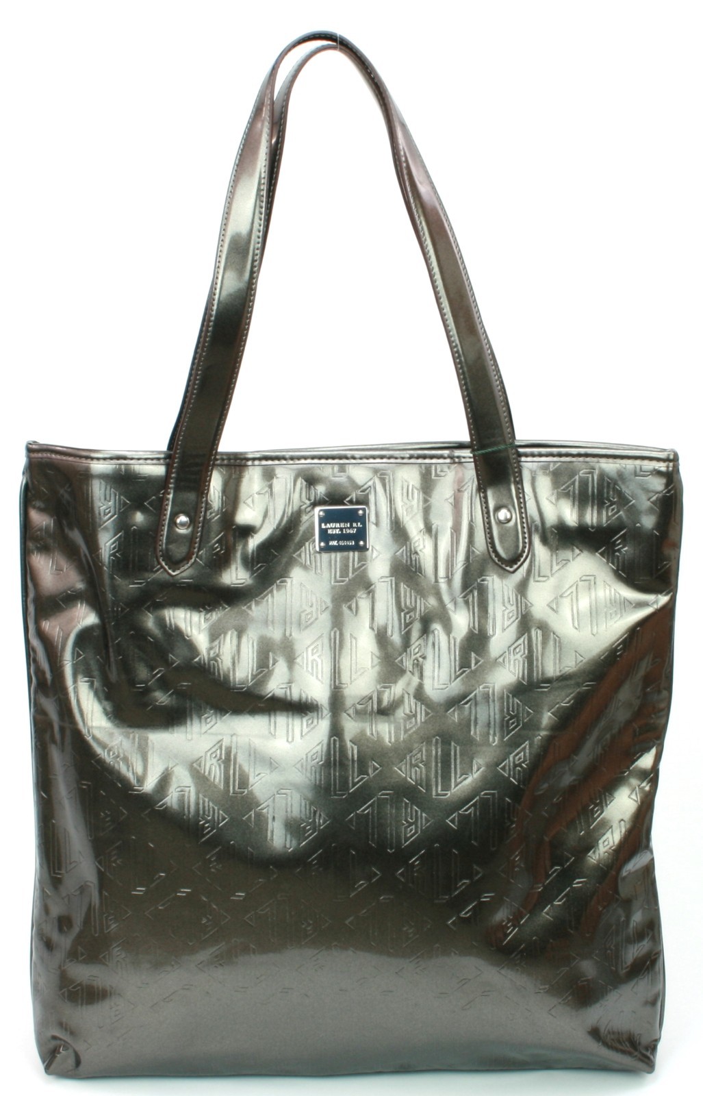 Lauren Ralph Grey Tote Bag Vinyl Logo Embossed Womens Shoulder Handbag