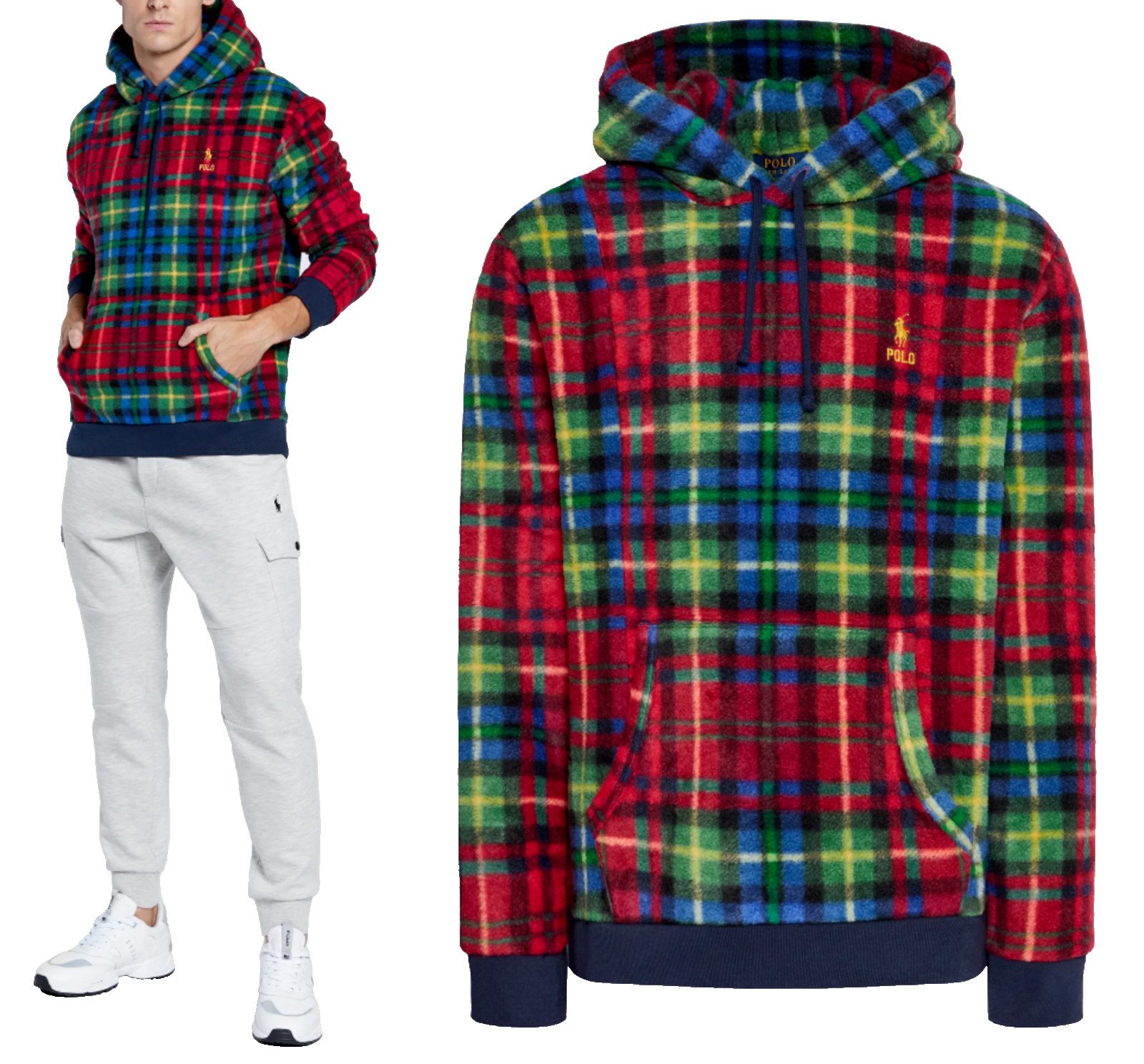 Polo Ralph Lauren Hoodie Royal Crimson Plaid Jacket Sweater XXL