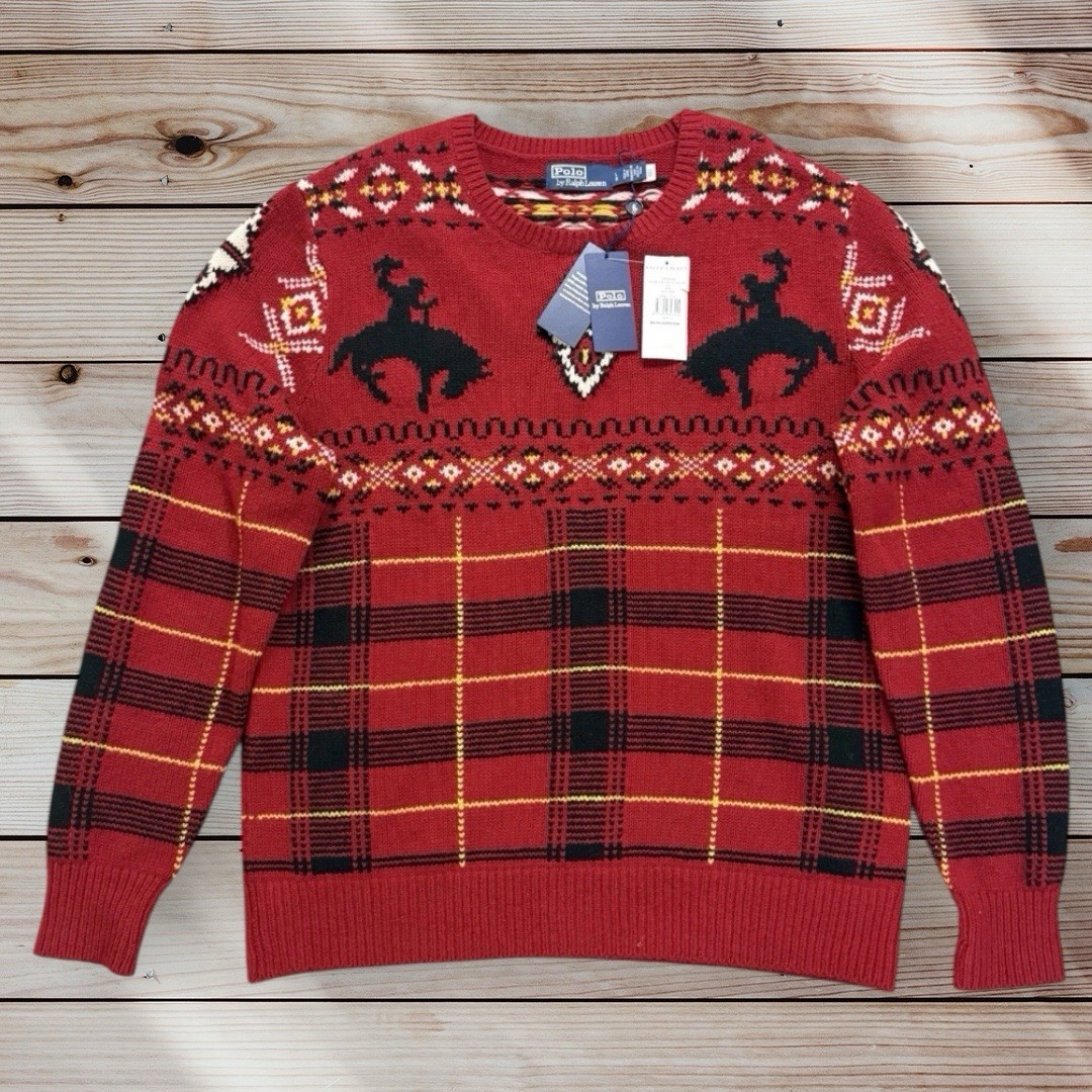 Polo Ralph Lauren Western Inspired Fair Isle Wool Jumper Red sweater Large £500