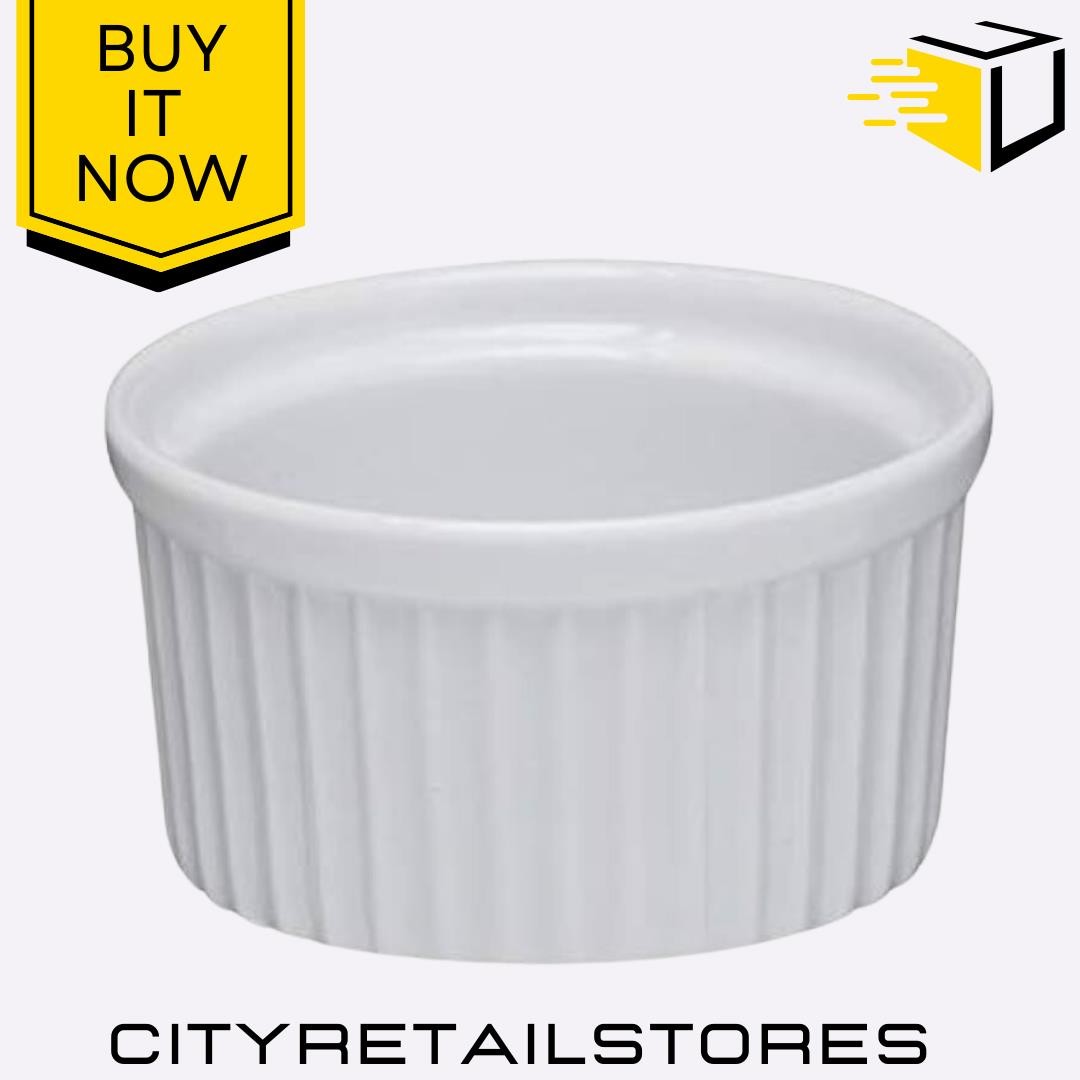Round Ramekin Ceramic Oven Dish Serving Bowls Souffle Sauce Pots Set White 2x