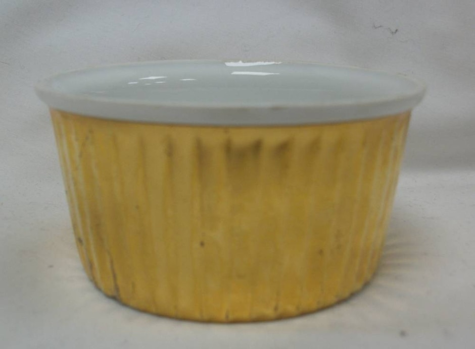 Ramekin Bowl Ceramic Beige Fluted Souffle Dish Oven Safe Baking Serving 2Pcs
