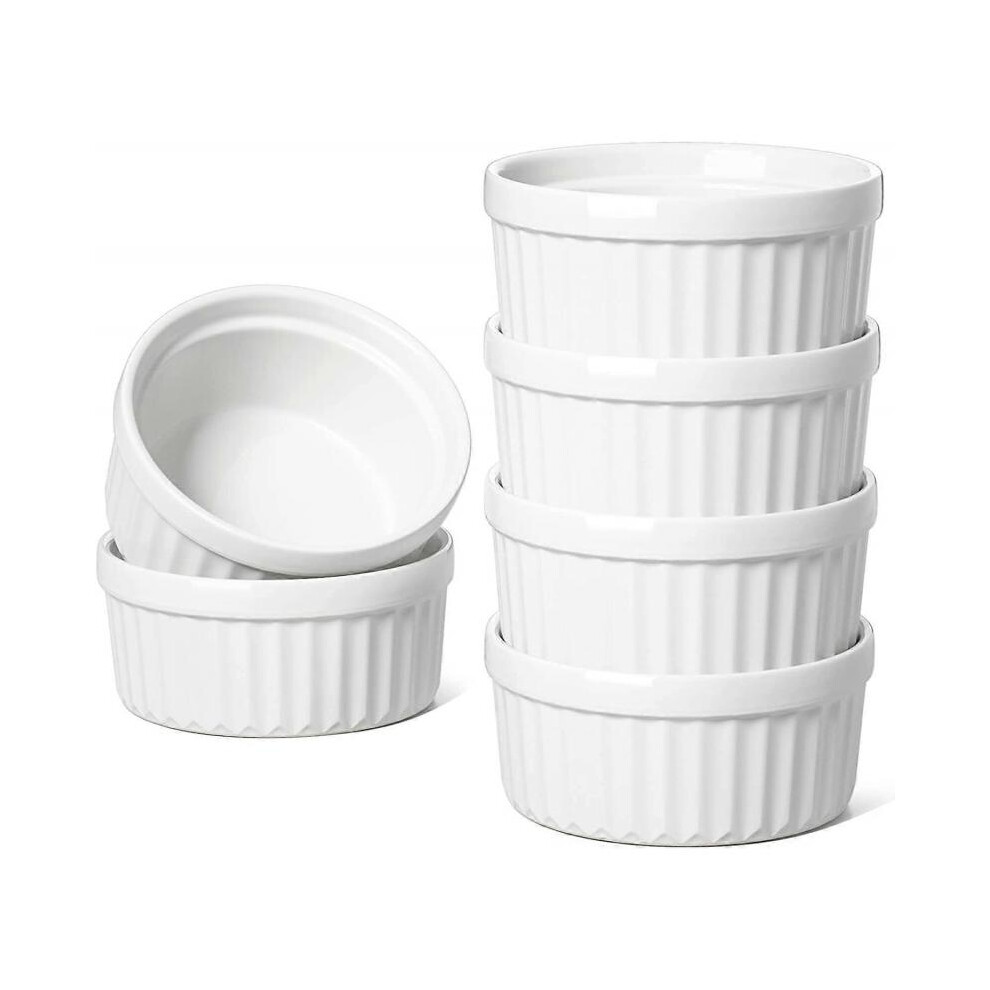 4 Oz Ramekins, Creme Brulee Dishes, Ramekin Set for Souffle, Dipping Sauces, Pudding, Set of 6, White