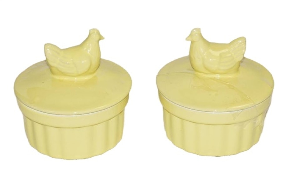 Pair Of Yellow The Rolling Pin Ramekin Brulee Dishes