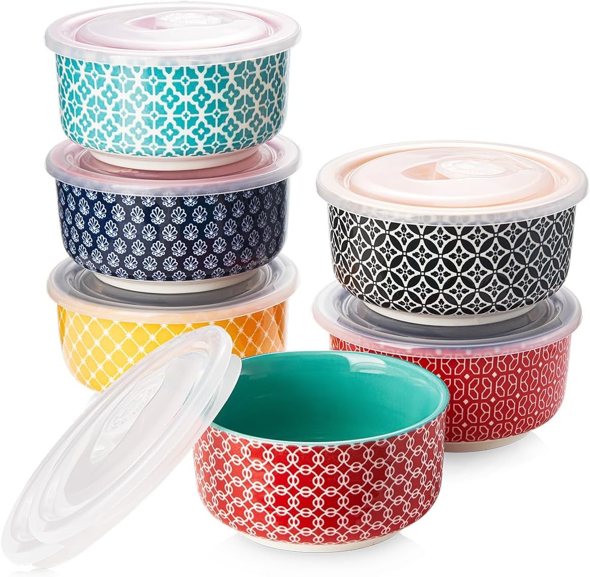 DOWAN Ramekins with Lids, 6 OZ Porcelain Ramekin Dishes for Creme Brulee Souffl?, Egg Mould, Muffin Cases, Mini Dip Bowl, Baking Bowl for Oven & Air