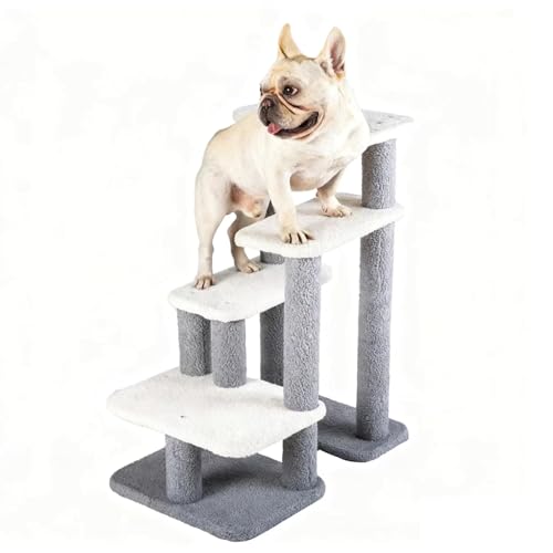Grey Dog Ramp for High Beds, 39 cm High, 3-step Ramp for Dogs, Pet Stairs, Non-slip, Balanced Pet Step, Playable