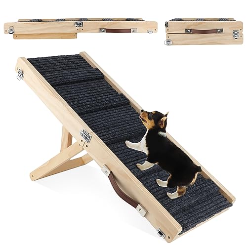 REHOOF Extra Wide Dog Ramp for Bed Sofa Wooden Pet Ramp for Large Dogs, Adjustable Height 33-66Cm, up to 50Kg,Bed with Non-Slip Traction Mat Dog Climbing Ladder for Car,Portable Folding Pet Ramp