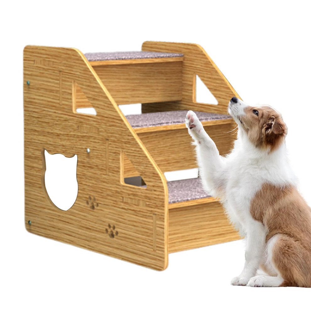 Dog Stairs & Stairs - 3 Tier Pet Stairs & Ramp for Medium/Small Dogs, Old Cats, Dogs/Cat Ladder, Wood, Non-Slip for Beds and Cars, Bunk Beds, Sofa