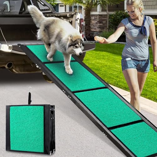 Fellie Folding Dog Ramp, 61"L Portable Lightweight Pet Ramp for Medium & Large Dogs up to 165LBS, Non-Slip Surface, Steps for Car, Trucks & SUVs