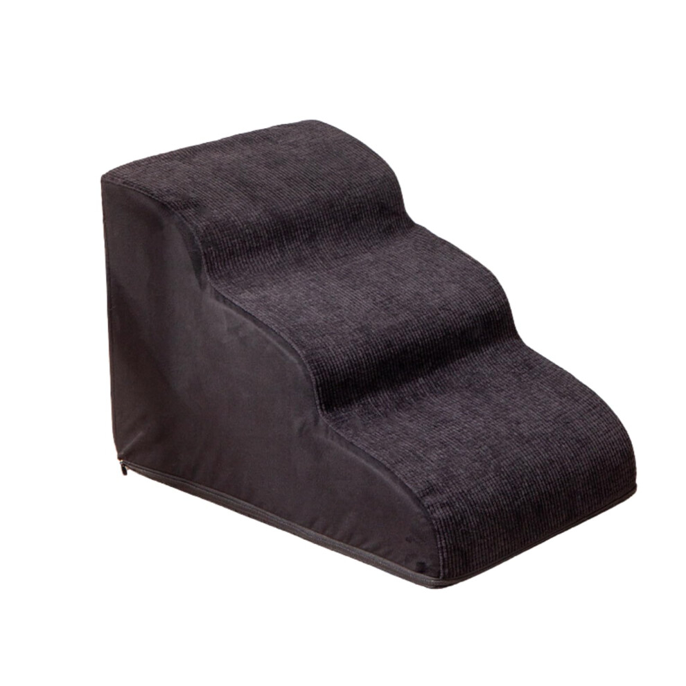 Pet Ramp For Small Dogs And Cats, Washable Cover, NonSlip Foam, Curved ThreeLevel Dog Stairs For Sofa And Bed, Black