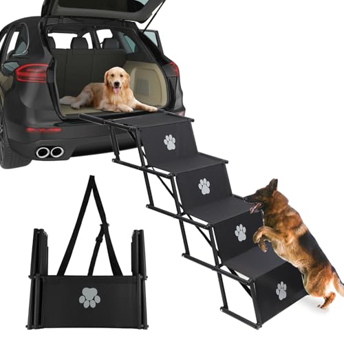 LEIBOU Dog Stairs for Cars, Portable Folding Pet Ramps for Cars, SUV, Trucks, Lightweight Pet Ramp for Large Dogs with Non-Slip Surface, Reinforced Dog Steps Supports Up to 200 lb, 5 Steps
