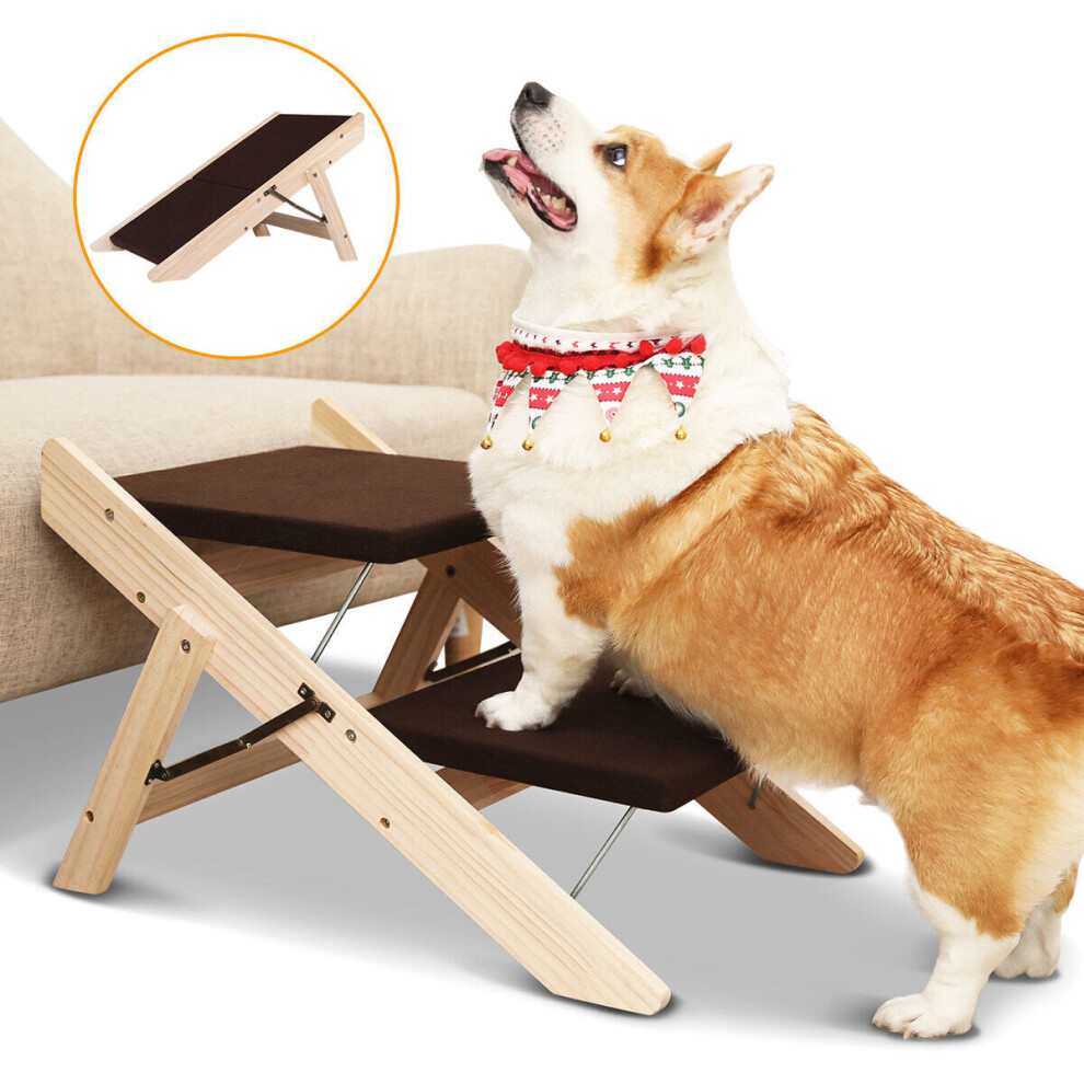 Dog Stairs Folding Wood Ramp For Dogs And Cats Non Slip Compact Size Wooden Step Foldable Travel Ready