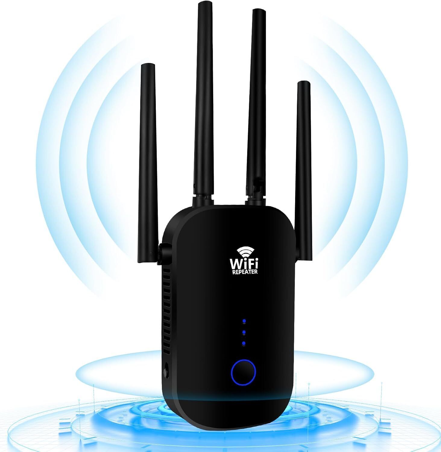 WiFi Extender Booster, WiFi Range Extender 1200Mbps, WiFi Booster Dual Band 2.4GHz & 5.8GHz, Wireless Signal Booster with External 4 * 3dBi Dual-Band Antennas, Internet Booster Up to 3000sq.Ft(Black)