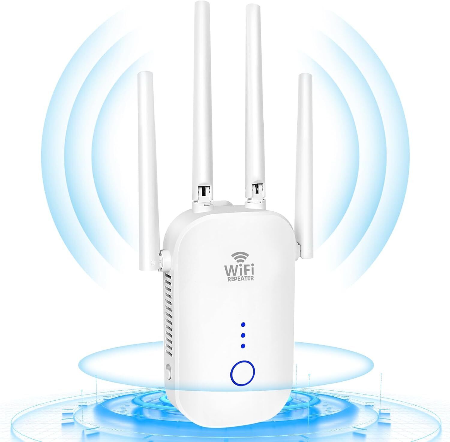 WiFi Extender Booster, WiFi Range Extender 1200Mbps, WiFi Booster Dual Band 2.4GHz & 5.8GHz, Wireless Signal Booster with External 4 * 3dBi Dual-Band Antennas, Internet Booster Up to 3000sq.Ft(White)