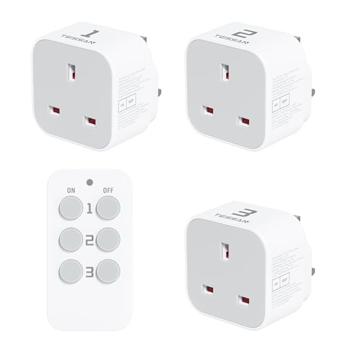 TESSAN Remote Control Plug Socket UK, Remote Socket with 30m Operating Range, Wireless Light Switch for Indoor String Lights, Lamps for Home Appliances, White