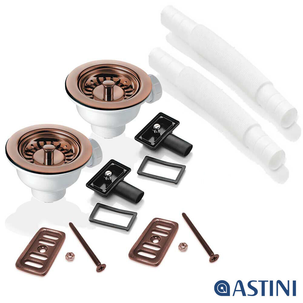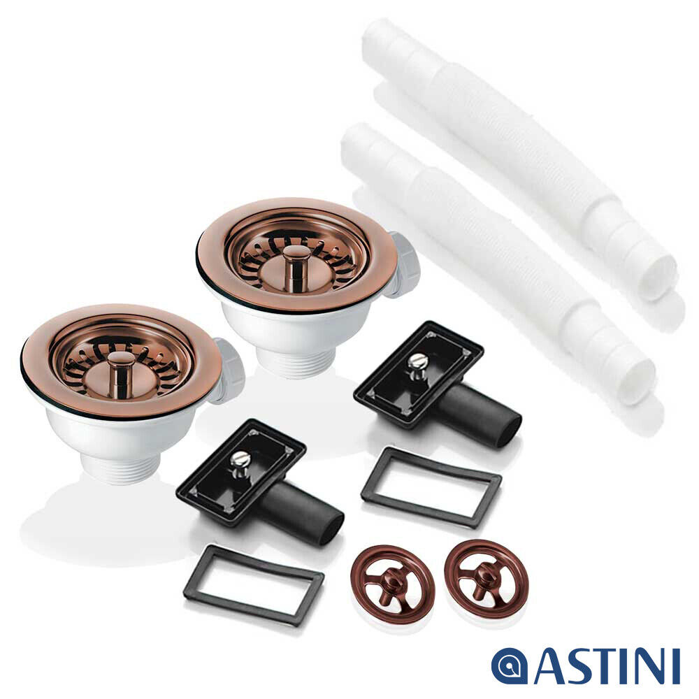 2x 90mm Antique Copper Waste 2x Overflow For Astini RAK Rangemaster Ceramic Sink